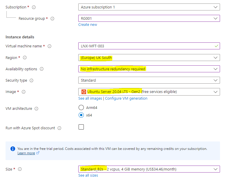 I have selected the option to use B2 size but B1 may prove adequate if you’re trying to save credit. We’ve allowed SSH publicly but will change that later.