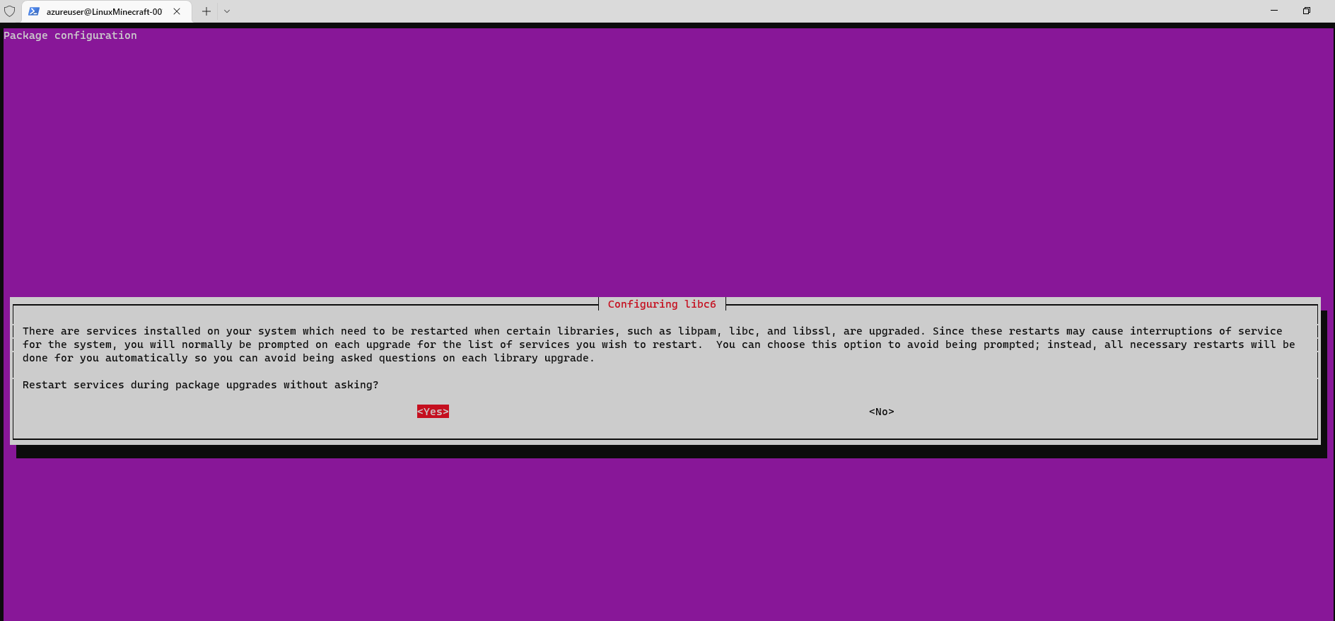 You then just simply need to reconnect to the SSH session via Windows Terminal and then run this set of commands to update your apps, install the required apps for Minecraft and open the firewall for Minecraft traffic