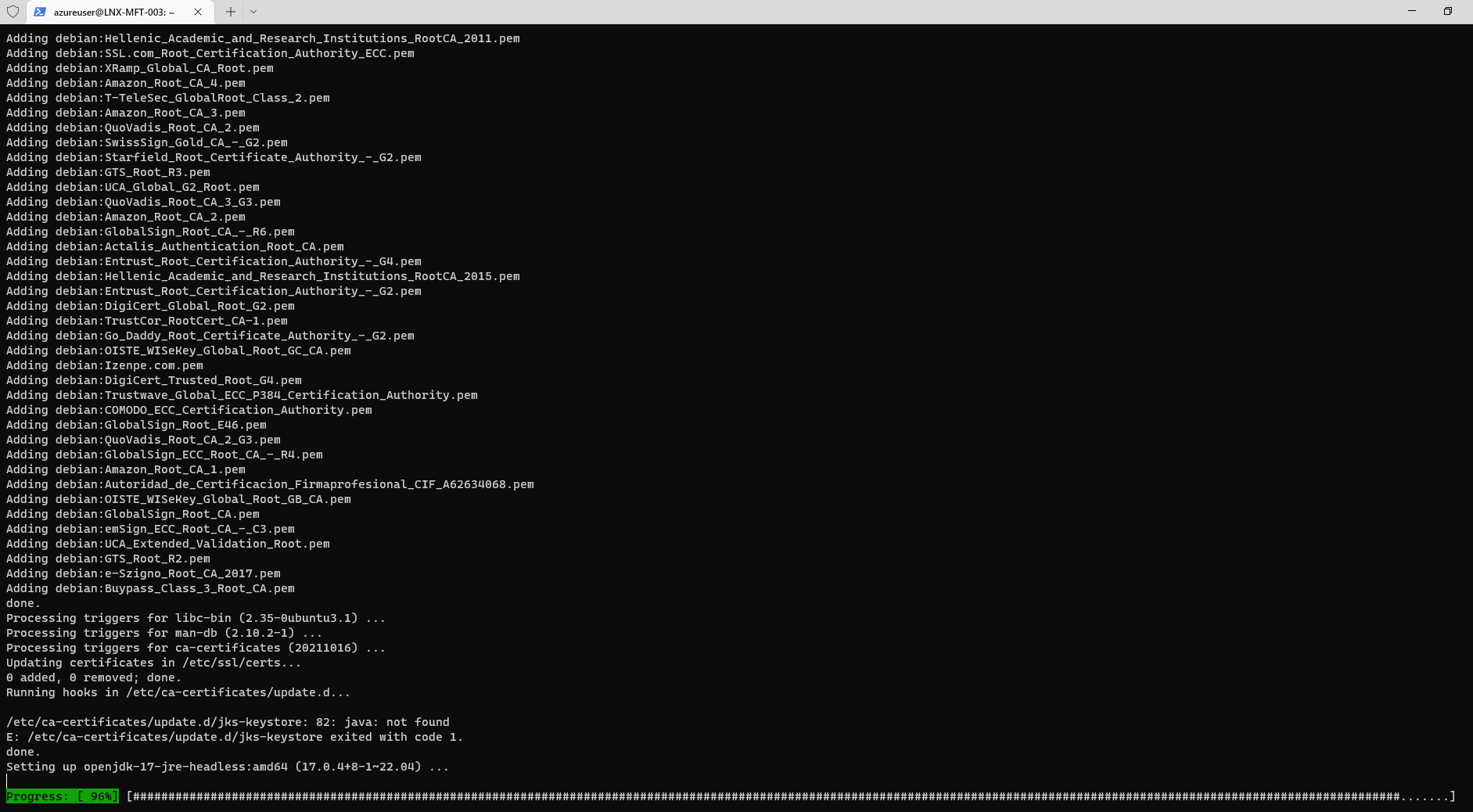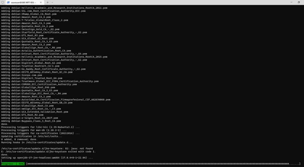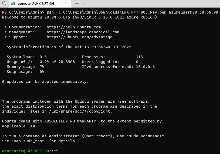 ssh -i C:\Users\Admin\Downloads\LNX-MFT-003_key.pem azureuser@20.68.56.99