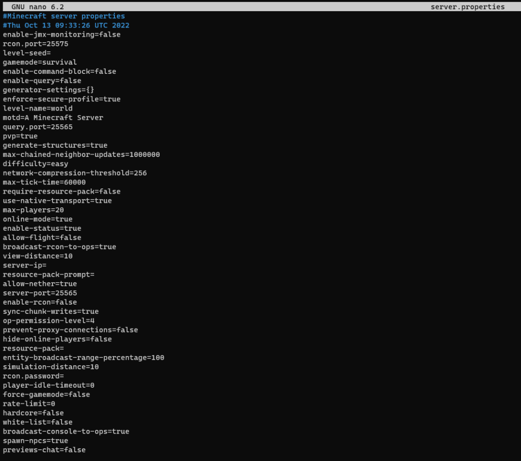 You can also use nano to edit the server.properties file in the same directory