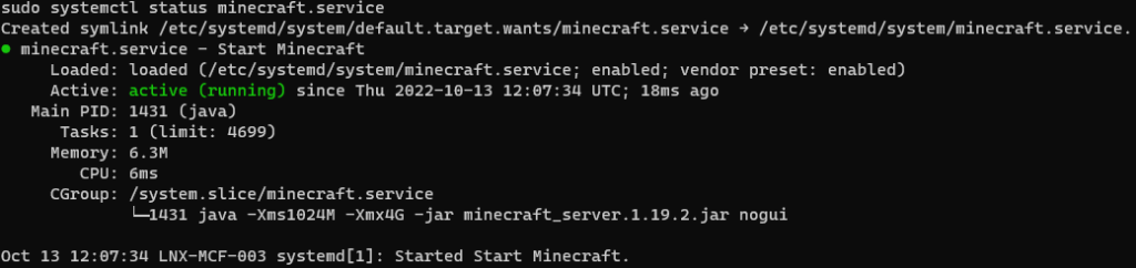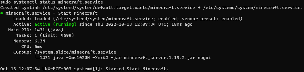 sudo systemctl enable minecraft.service