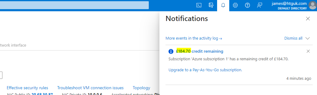 Firstly, you need to sign up for an Azure account and get your free credit, which I believe is about £185 or something like that. So make sure you sign up for Azure (you will need to provide some card details, obviously). Even once the free credit is used, we’re trying to keep the cost down so it should ideally be no more than a few dollars per month.