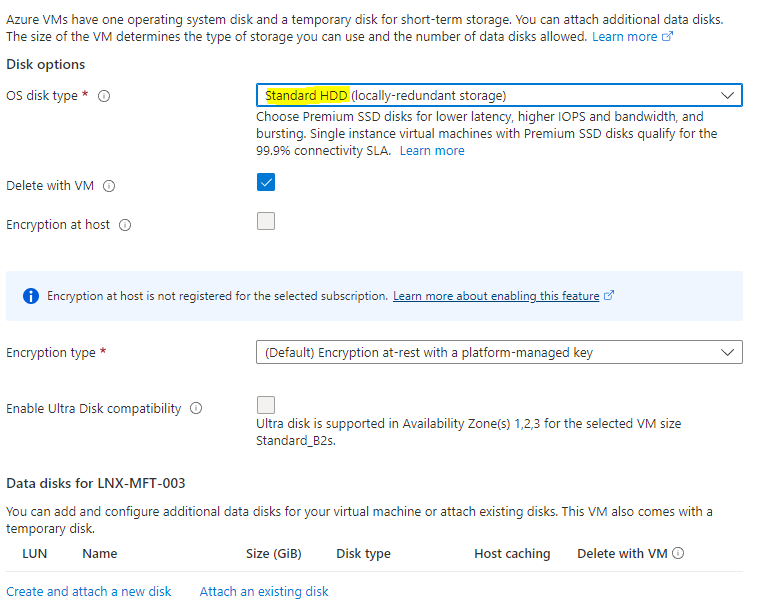 I also switch the disks to Standard HDD as below, Minecraft isn’t usually too intensive