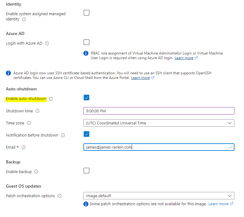 For management options, it makes sense to enable auto shutdown as below, as no doubt children are good at forgetting to power things off when they’re finished 🙂