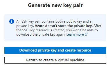 Click on Download private key and create resource and it will save your key to the local machine, make a note of where it is located as you will need the path to the key when connecting