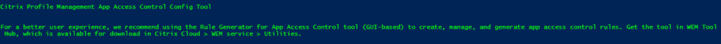 When you run this script (you need to run it as admin), it will first tell you that there’s a GUI tool available to do it from the WEM Hub which you can download from Citrix Cloud. Right at the minute, you can’t get it because it’s not in the WEM Hub yet, but I will update this post when it is available.