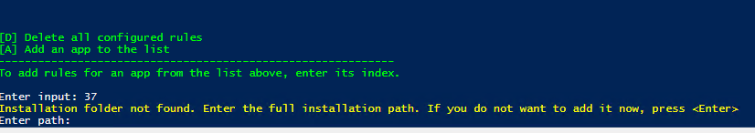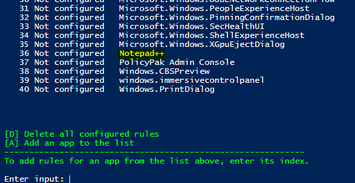 Firstly hit A and then add the name of the application you’re going to manage. I chose Notepad++. This simply adds an entry to the index and gives it a number – make a note of the number (36 in my example)