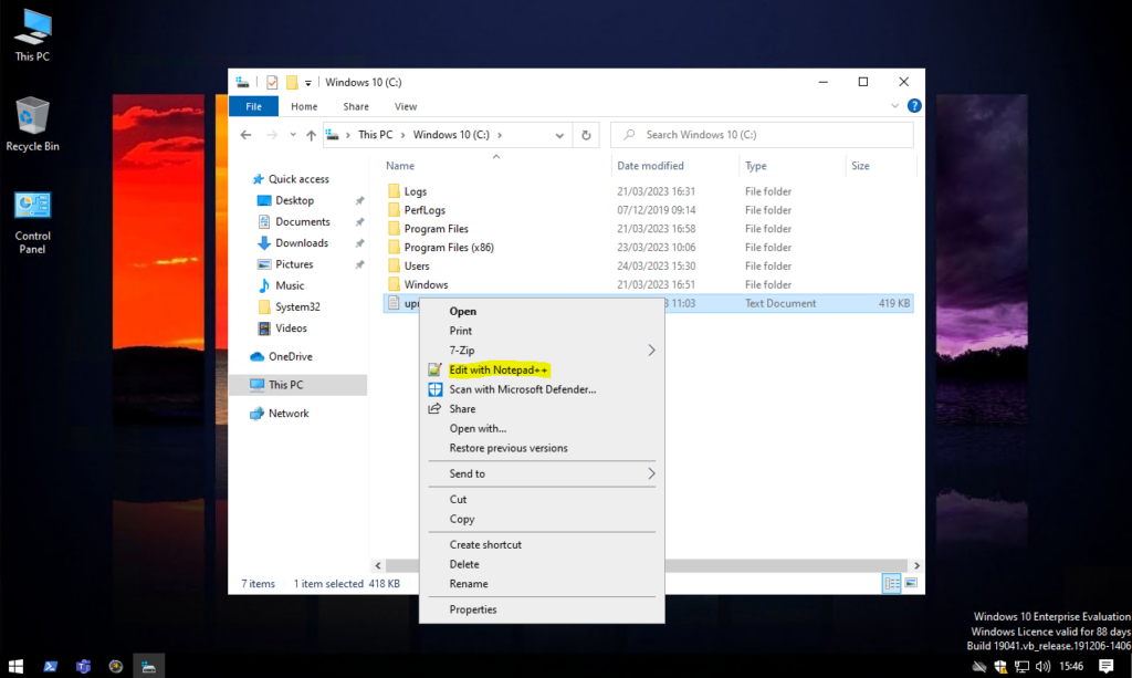 So I’ve added my test user into the AD group that hides Notepad++ and opened up a session. As you can see, Notepad++ is not visible in the Start Menu, and neither can you see the “Edit with Notepad++” option when you right-click a compatible file.