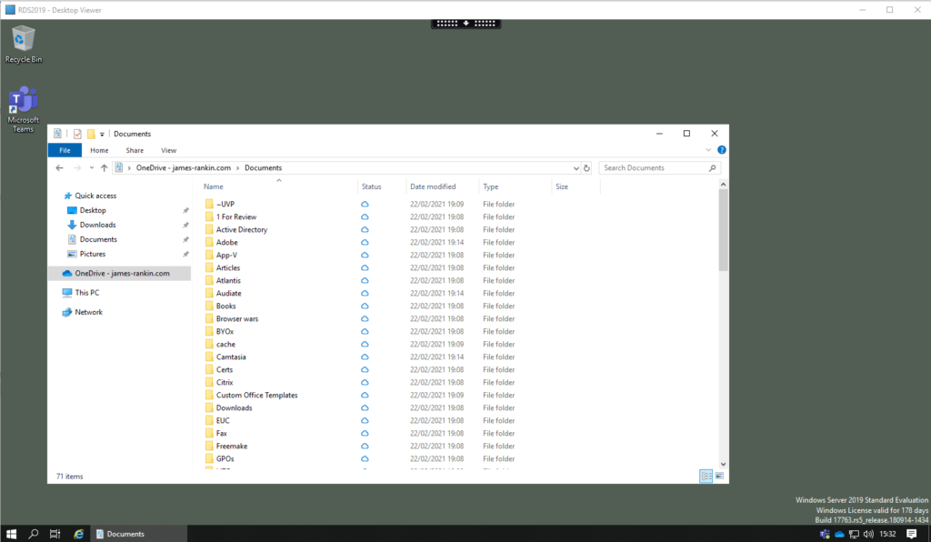 So there’s little point arguing what works best on Citrix Virtual Apps and Desktops – chances are you’ve already been told to look at OneDrive. As with Teams, Microsoft can be quite savvy by pushing this hard into the personal user space and then allowing the users themselves to pressure enterprises into adoption, because they’ve already become familiar with the product.