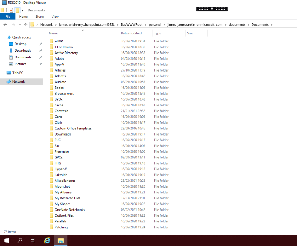 If you’re unable to do the “Microsoft” way because of any of the reasons mentioned above, you can try to sling it together using the old WebDAV protocol (Web Distributed Authoring and Versioning). I know a lot of people have a visceral fear of WebDAV, mainly because they fear slow performance and Microsoft withdrawing support for it, but I recently put this into a customer environment and for their purposes (a pure published apps estate) it worked pretty much perfectly. The best benefit for Citrix Virtual Apps or other similar environments is that we are creating an “online” connection through Windows Explorer – which means there is no storage overhead whatsoever.