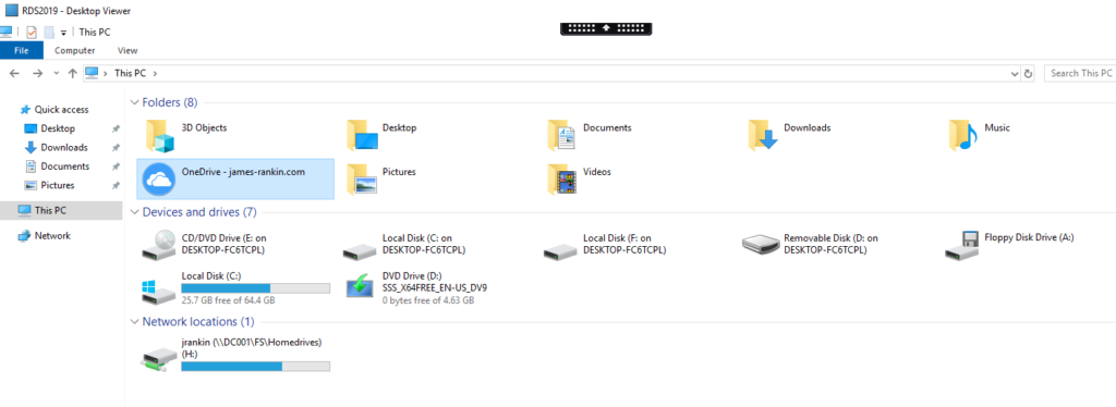 However, in order to then be able to automatically present them with their OneDrive folder, we need to do quite a bit of work. Many online guides simply suggest getting the user to log in via the web, choose the “open in File Explorer” option and then manually map it as a Network Location, but this is a lot of hard work for your average user. If we could do this automatically and have the user’s folder presented without any interaction on their end, we’d be onto a winner.