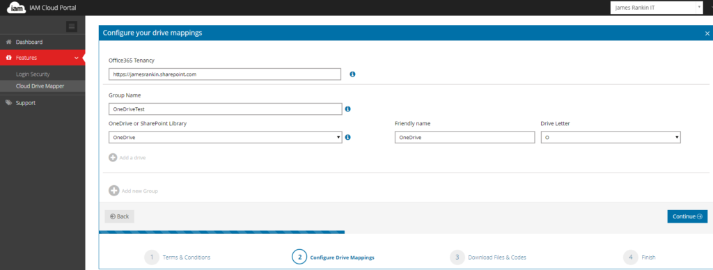 Now you will need to find the base name of your Sharepoint site that hosts all of your user OneDrive instances. My own personal site is jamesrankin-my.sharepoint.com and it is usual to find names in this format. They should all have a sharepoint.com address of some sort. You will need this address on a few occasions in this process, so make a note of it!