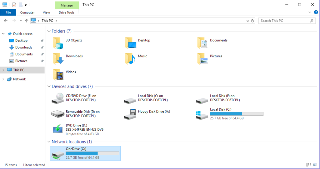 However – how can we present this a bit more nicely? Well, if you think back to my article on network drive mappings, remember that we discussed adding some Registry values that added folders into the Explorer view? We can simply leverage that – all I’ve done is add a OneDrive icon to the build that I can use, and substituted the FolderLocation variable for the OneDriveUserPath environment variable. Again, you just need to get the user to run this once, as the settings will be saved into their profile and persisted.