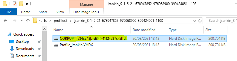 [12:16:29.131][tid:00000e64.00002e80][INFO]             Renaming corrupt user profile disk. From: \\dc001\fs\profiles2\jrankin_S-1-5-21-678947852-976068900-399424051-1103\Profile_jrankin.VHDX To: \\dc001\fs\profiles2\jrankin_S-1-5-21-678947852-976068900-399424051-1103\CORRUPT_38a0c16c-9e98-492d-9cbb-c56df29e7e65_Profile_jrankin.VHDX