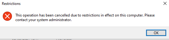 Enabling this setting will allow CDM to map the drive and provide authentication, but will hide the mapped drive itself from the shell (either cosmetically or completely, dependent on the GPO you use). Assign the GPO and let it propagate to your devices. Now, if they try and access the O: drive directly they will get this message