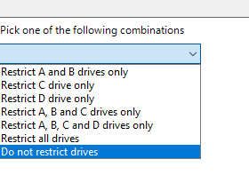 To hide the drive, you will need to become familiar with writing yourself a custom ADMX file to hide a unique drive combination. The standard GPOs (Prevent access to drives from My Computer and Hide these specified drives in My Computer) that we use in Windows environments only allow you to hide several specific combinations – shown below