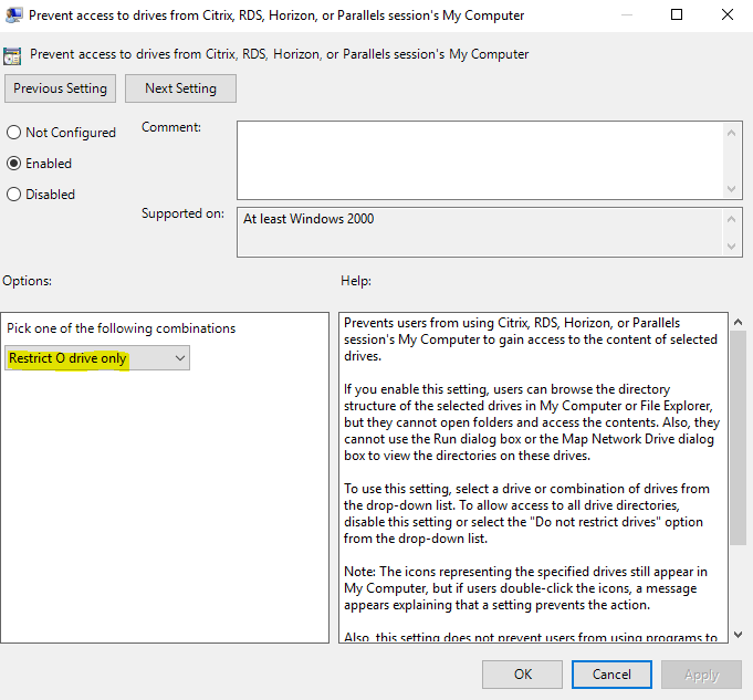 Luckily, Carl Webster has already done most of the hard work for us and written a blog where you can choose the right combination of drives and import them into downloadable ADMX and ADML files that you can import straight into Group Policy. Here is the article you need.