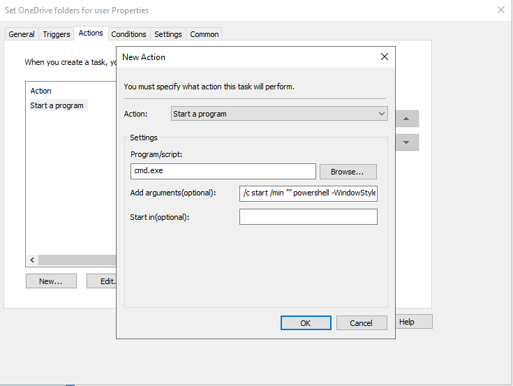 cmd.exe /c start /min "" powershell -WindowStyle Hidden -ExecutionPolicy Bypass -File "\\MYDC\netlogon\SetOneDriveFolder.ps1"