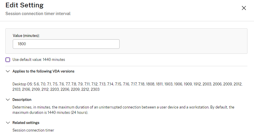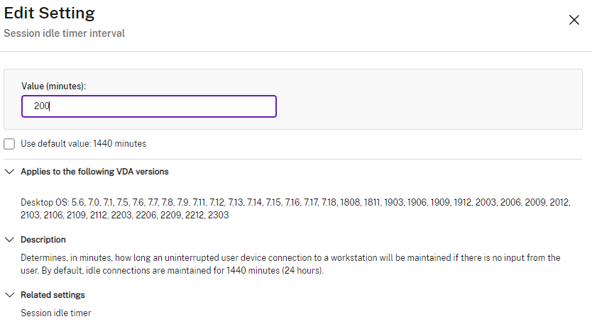 Citrix Policies | Computer | ICA | Server limits | Server idle timer interval