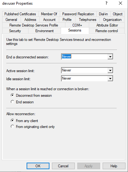 Also, the RDSH settings can be additionally configured on Active Directory user objects (as shown below) as well as via Group Policies. Do yourself a favour and don’t use the settings on the AD user objects, stick to policy.