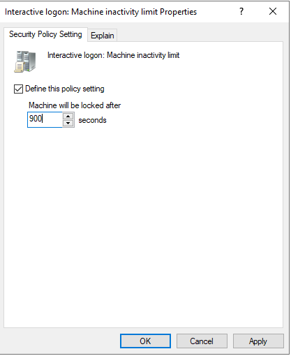 However, the “machine inactivity limit” GPO is a Computer level setting, so you cannot skin different inactivity limit timeouts for different groups of users on the same devices. If you did need different settings for this policy for different user groups on the same devices, you would need to use the method specified below.