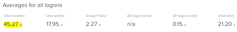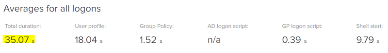This series of articles is being sponsored by uberAgent, because the most important point to make about logon times is that if you can’t measure them effectively, then you will never be able to improve them! uberAgent is my current tool of choice for measuring not just logons (which it breaks down into handy sections that we are going to use widely during this series) but every other aspect of the user’s experience. All of the measurements in this series are going to be done via uberAgent, and as it comes with free, fully-featured community and consultants’ editions, there’s absolutely no reason that you can’t download it and start using it straight away to assess your own performance metrics. I’ve written plenty about uberAgent on this blog before, and I stand by it as the best monitoring tool out there for creating customized, granular, bespoke consoles that can be used right across the business. I’ve recently deployed it into my largest current client, so you can be sure I am putting my money where my mouth is – if it didn’t do the job, I wouldn’t have used it for my customers, simple as. It now features full Citrix Cloud integration and a “user experience” score to tell you where your users are having issues, so go and try uberAgent right now – you won’t regret it!