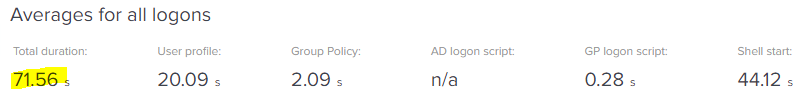 Well, we are ten episodes in to this series and as I originally intended spending about six months on this and now we’re up to a year and a half, it might be time to start bringing it to a close. The next (and hopefully final!) instalment will cover how much we can bring that logon time down if we optimize heavily, and also a full summary of the most important things you can do to try and generate good logon times for your users. Thanks for reading!