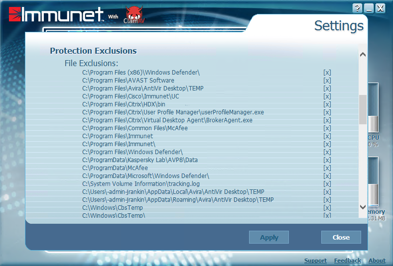 Antivirus exclusions